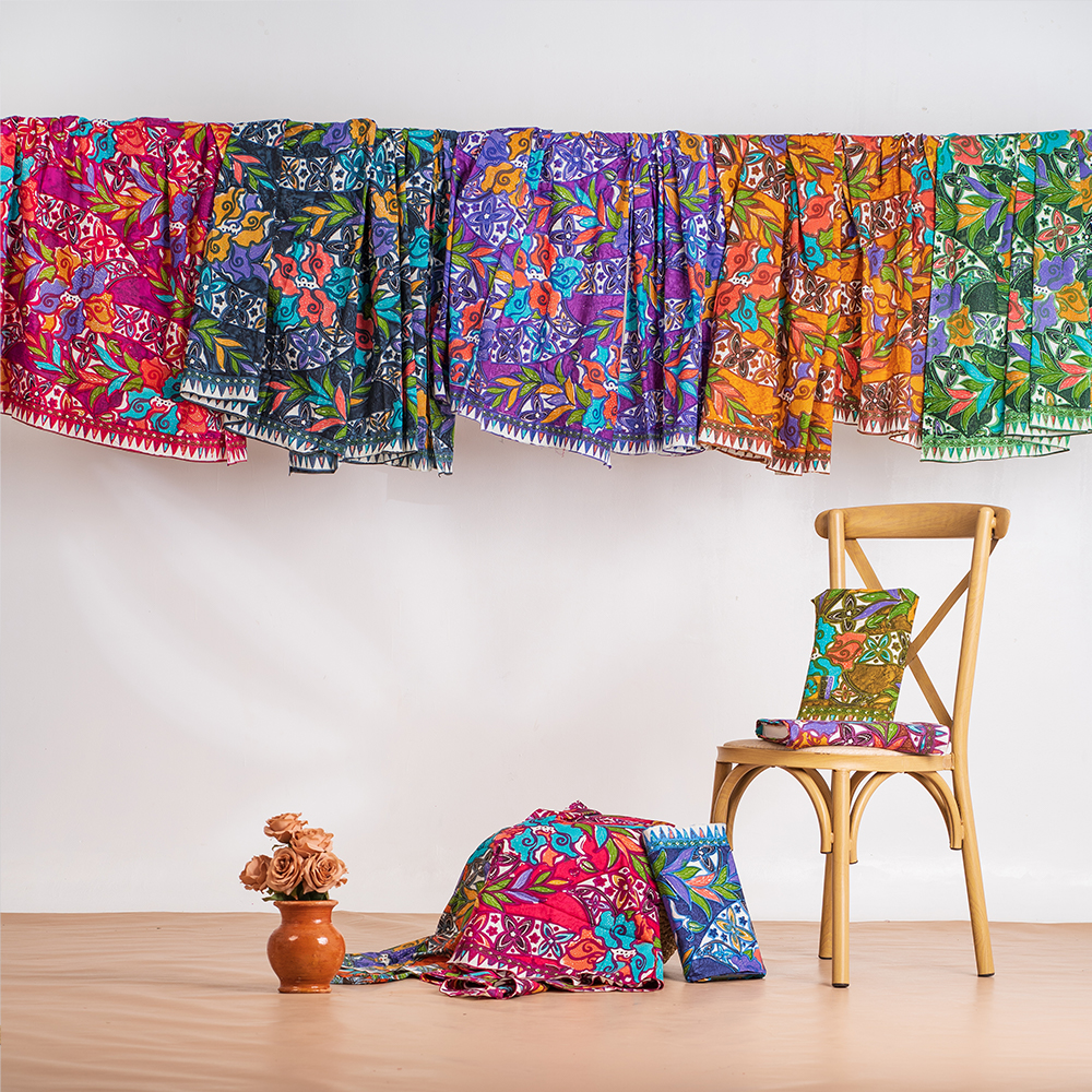 ဒီဇိုင်းလက္ခဏာ = အပွင့်အခက်ကြီးတစ်ခုချင်းဆီ၏ ကာလာကောက်ကြောင်းအလှ ပေါ်လွင်အောင် အသေးစိတ်ခြယ်မှုန်းထားသည်။