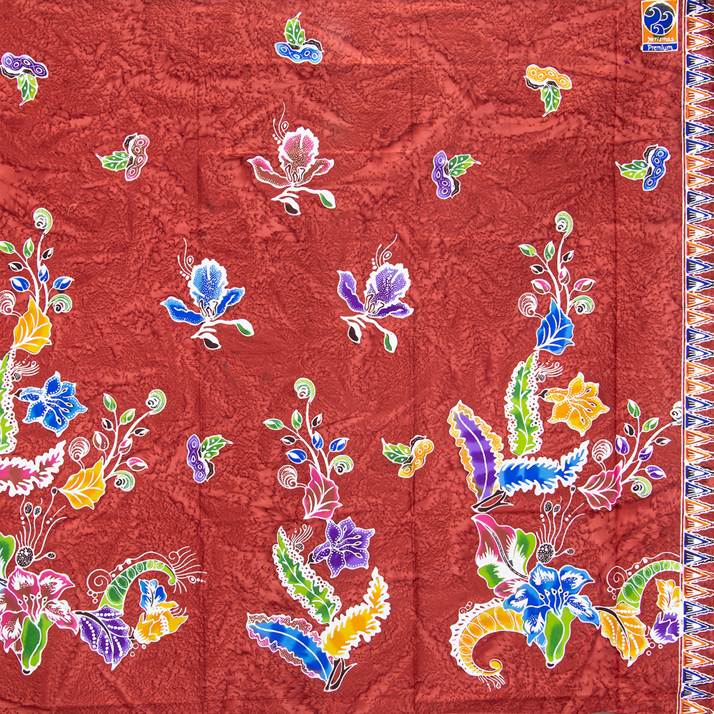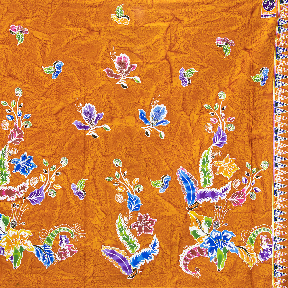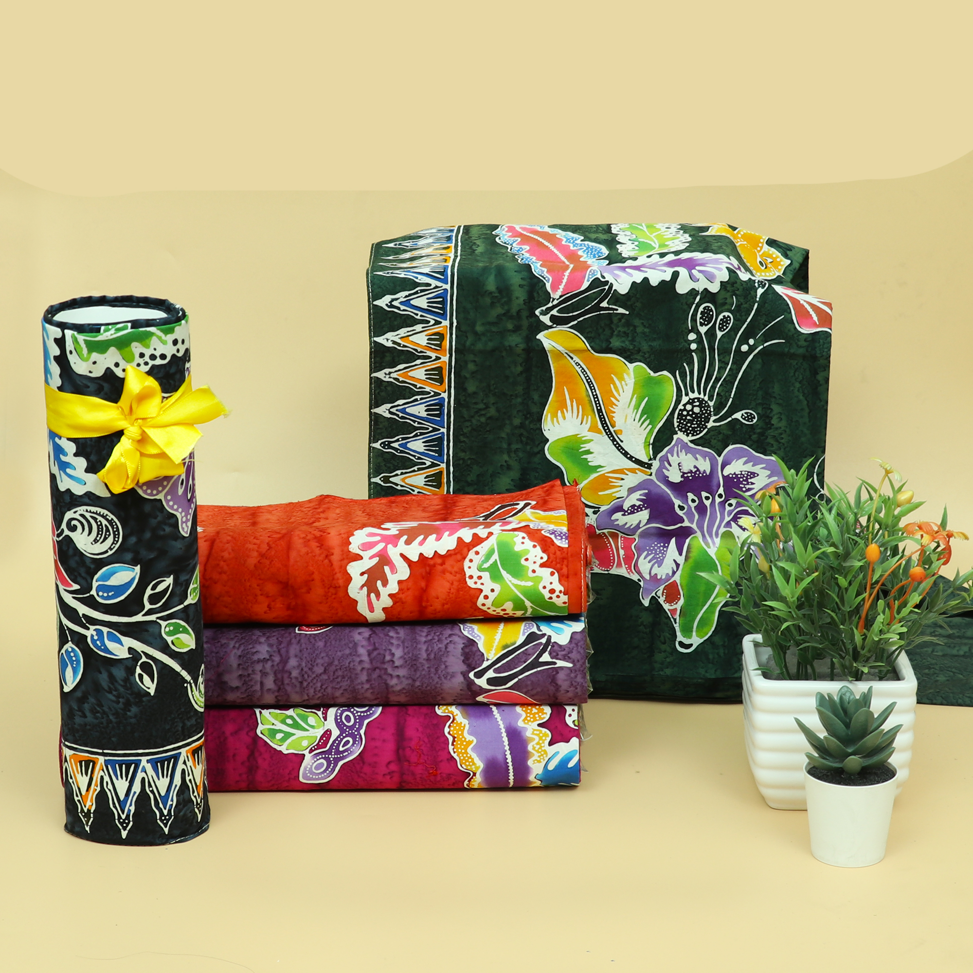 ပန်းပွင့်ပန်းခက်ကလေးများကို အောက်ခံအရောင်စိုစိုနှင့်တွဲစပ်ကာ ဂန္တဝင်ဆန်ဆန်ဖန်တီးပုံဖော်ထားသည်။