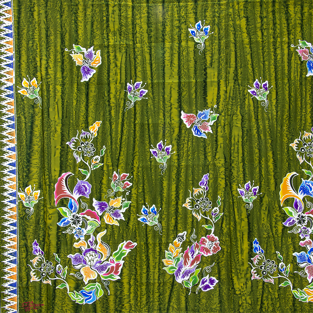 ပန်းပွင့်ပန်းခက်ကလေးများကို အောက်ခံအရောင်စိုစိုနှင့်တွဲစပ်ကာ ဂန္တဝင်ဆန်ဆန်ဖန်တီးပုံဖော်ထားသည်။