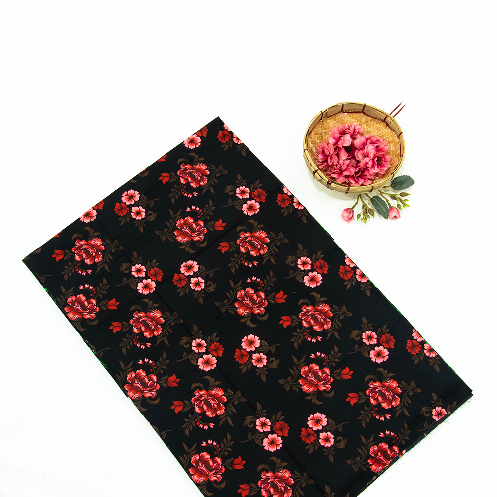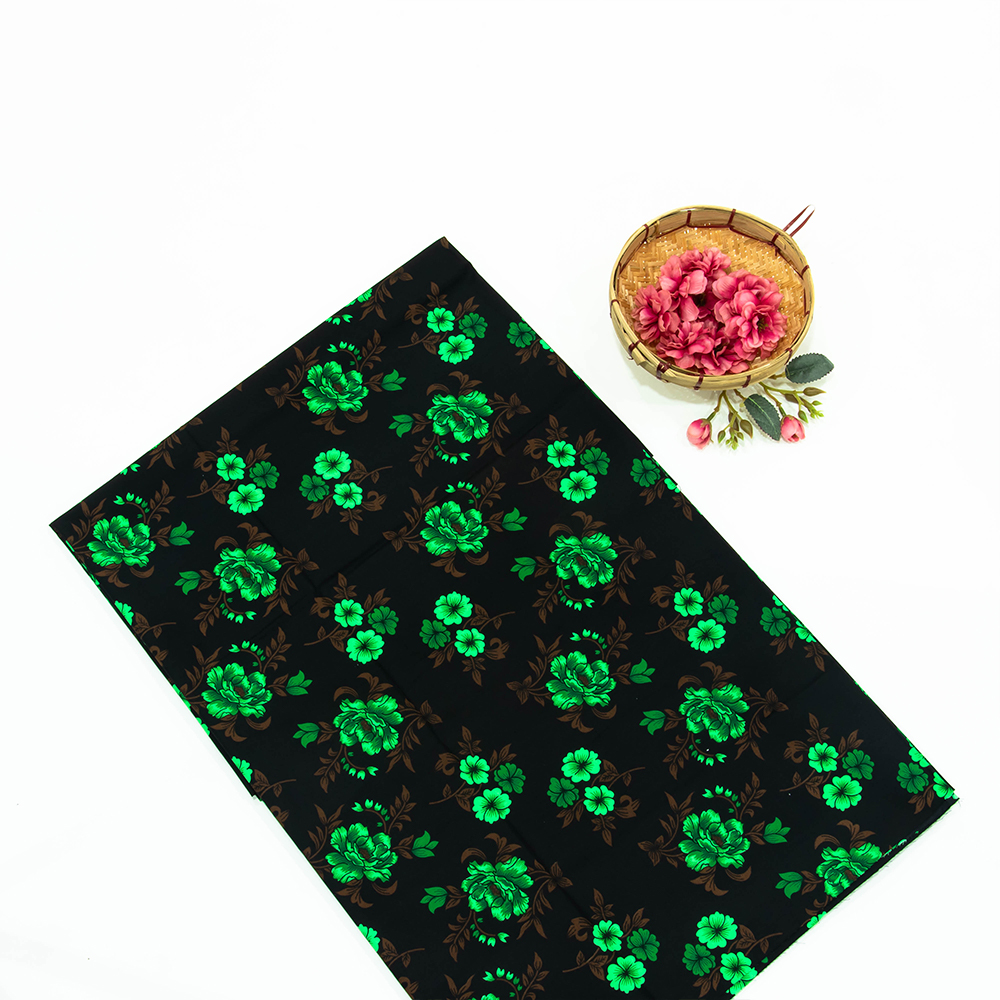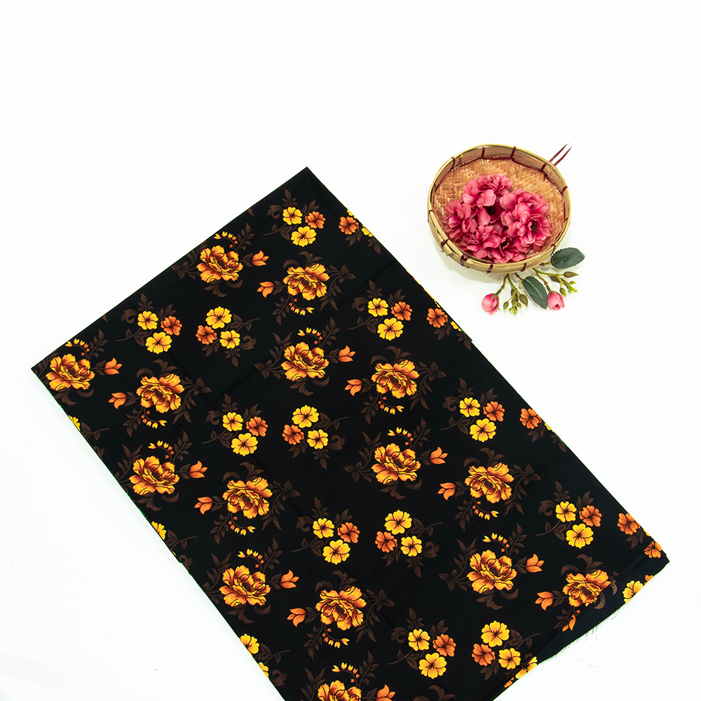 ဒီဇိုင်းလက္ခဏာ = အောက်ခံအနက်ဆင်ကိုမှ ရောင်စုံပန်းပွင့်လှလှလေးများနဲ့ လှပစွာ ပုံဖော်ထားသည်။